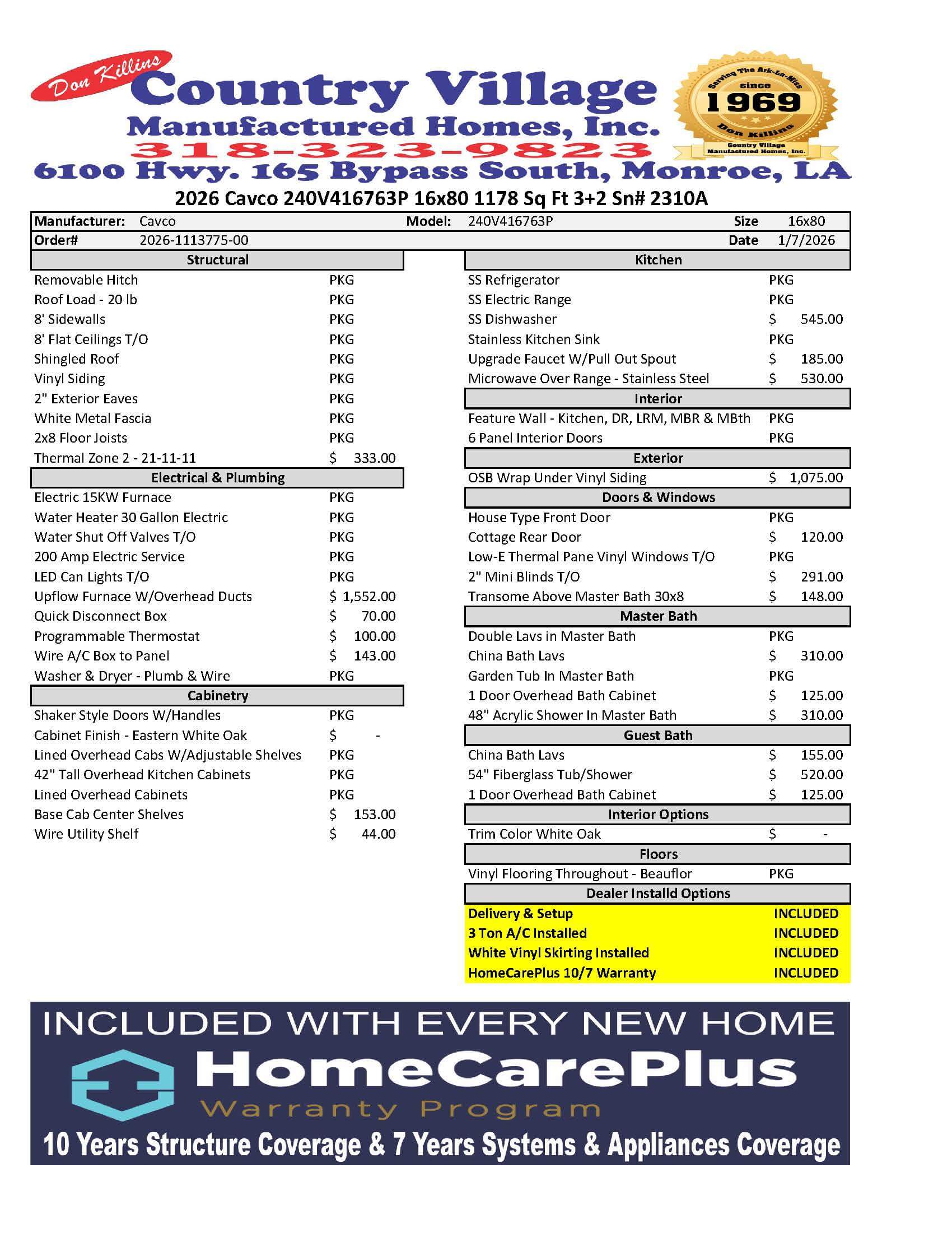 2026 Cavco 240V16763P 16x80 3+2 Sn# 2310 For Web