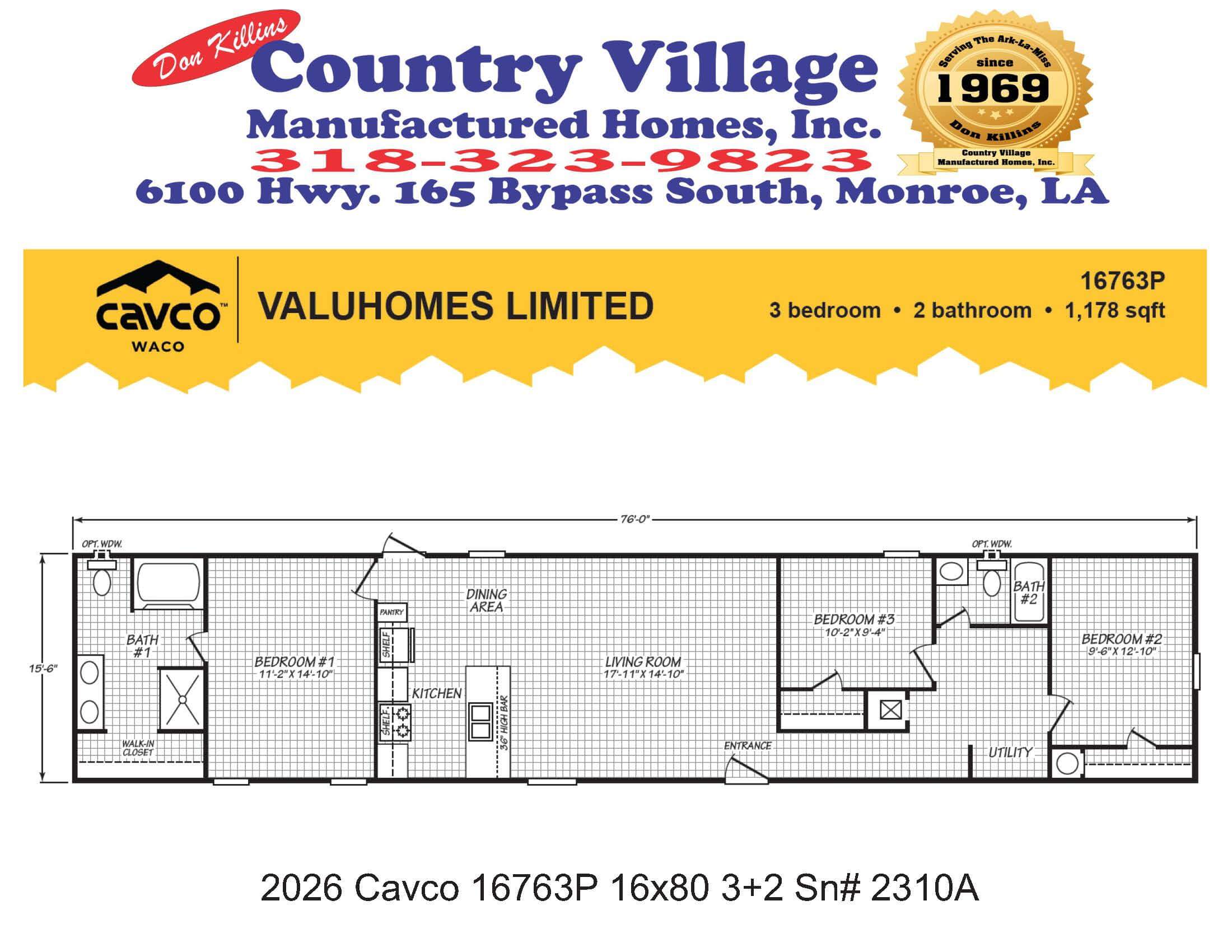 Cavco Waco 16763P 16x80 3+2 Sn# 2310A
