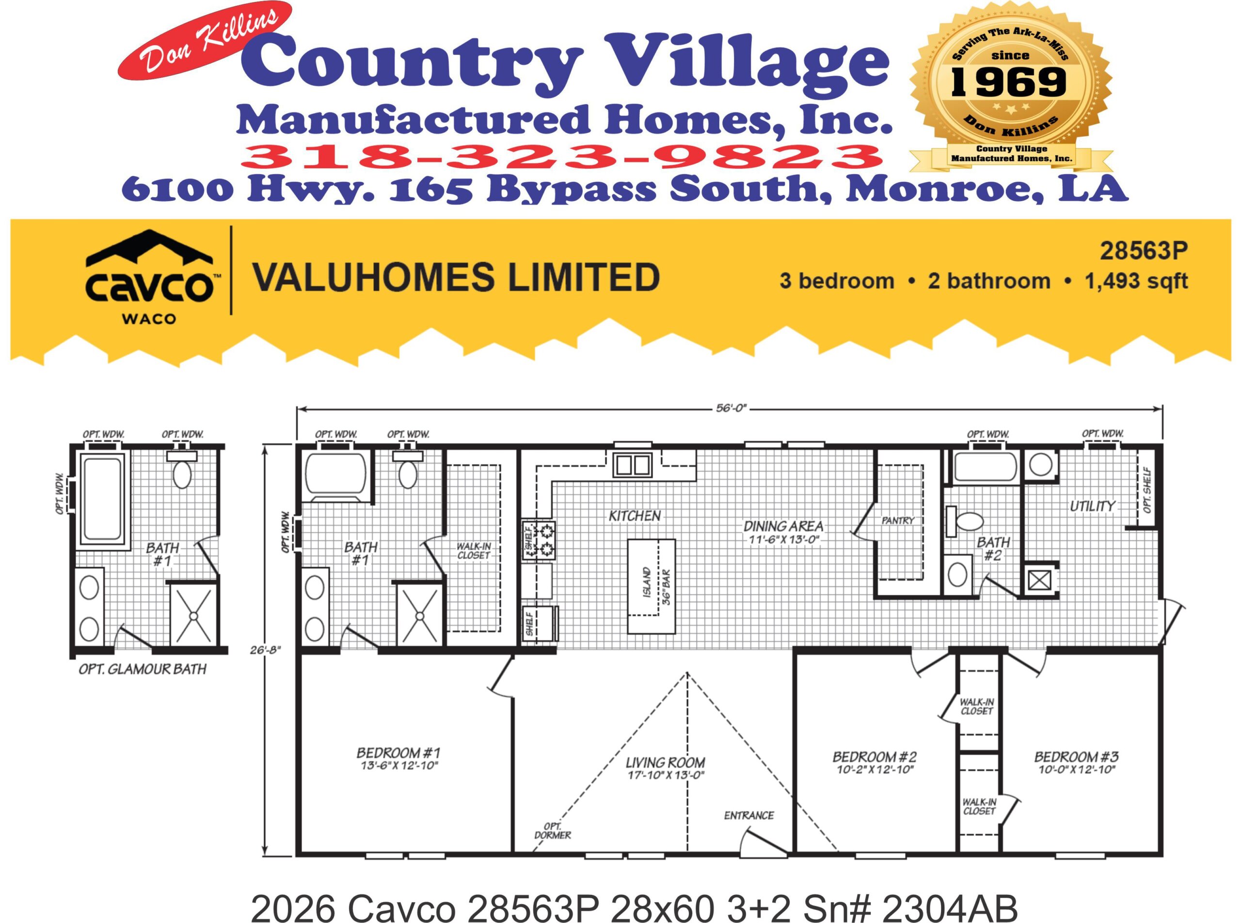 2026 Cavco 28563P 28x60 1493 Sq Ft 3+2 Sn# 2304AB