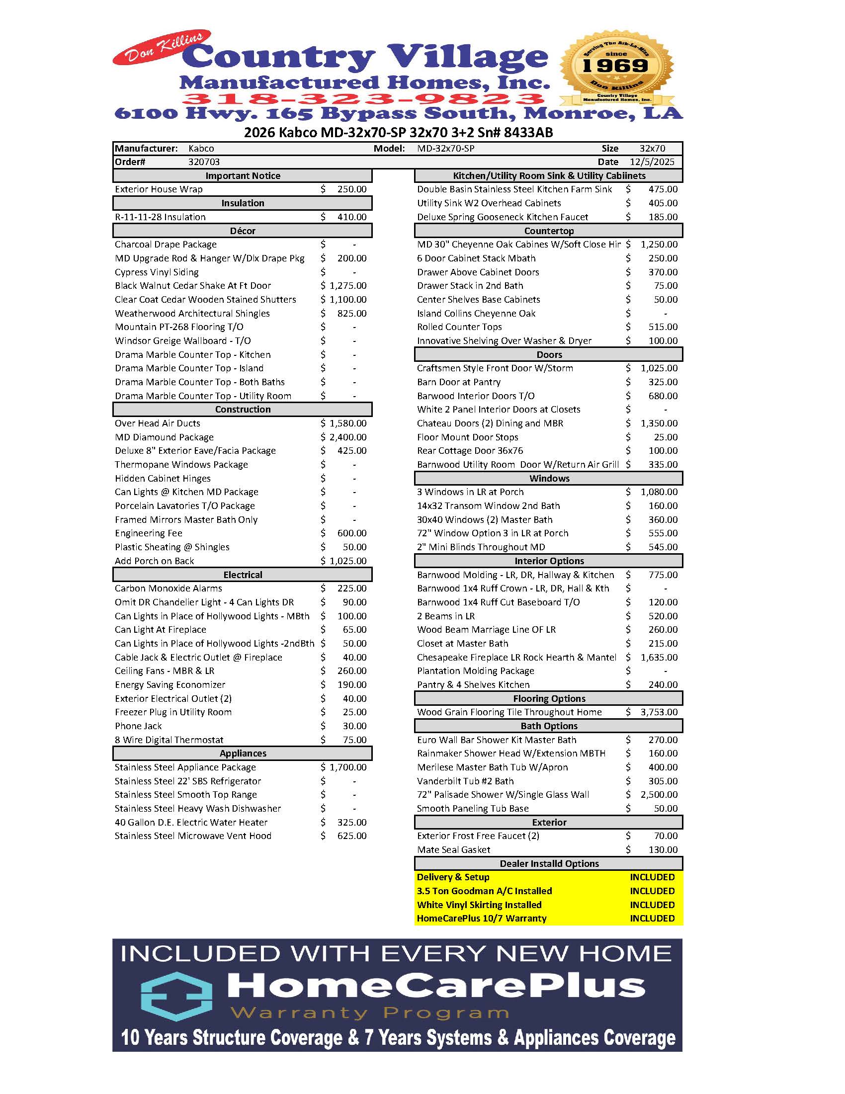 2026 Kabco MD-32x70-SP 32x70 1980 Sq Ft 3+2 Sn# 8433AB Standard & Optional Features In Home Ready to find out more? Click Here To Drop Us A Line Today For A Free Quote!