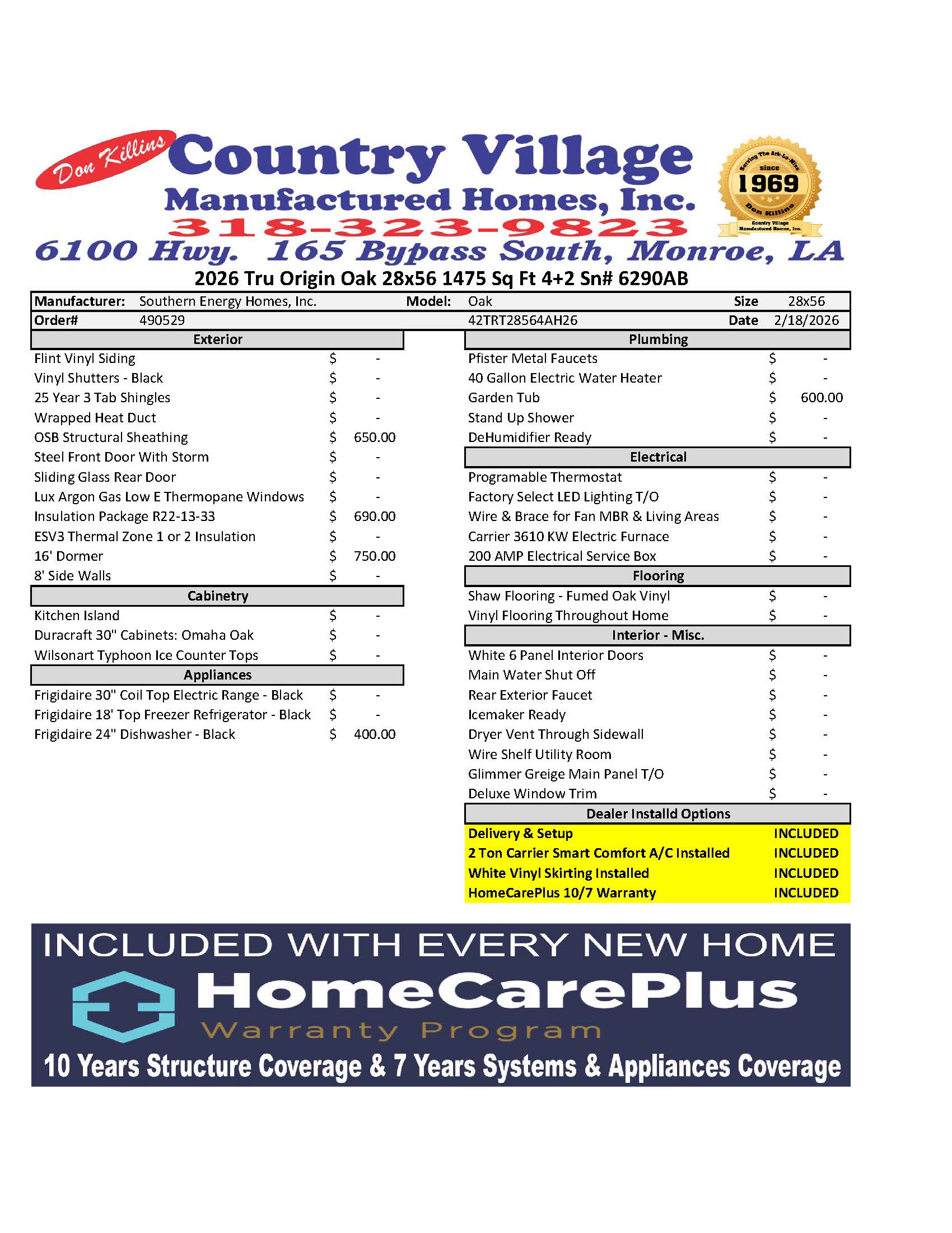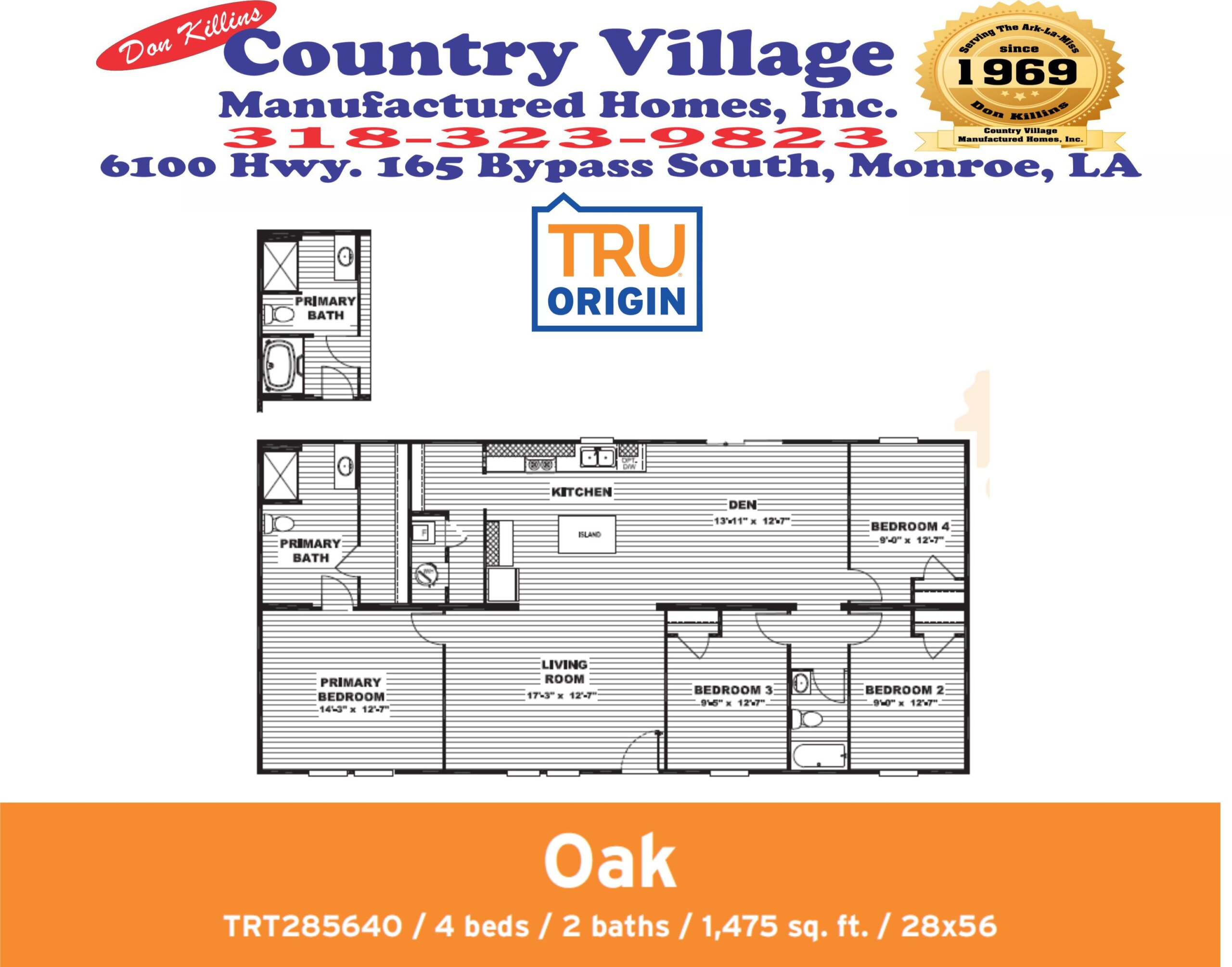 2026 TruMH Origin Oak 28x60 1475 Sq Ft 4+2 Sn# 6290AB Standard & Optional Features In Home Ready to find out more? Click Here To Drop Us A Line Today For A Free Quote!